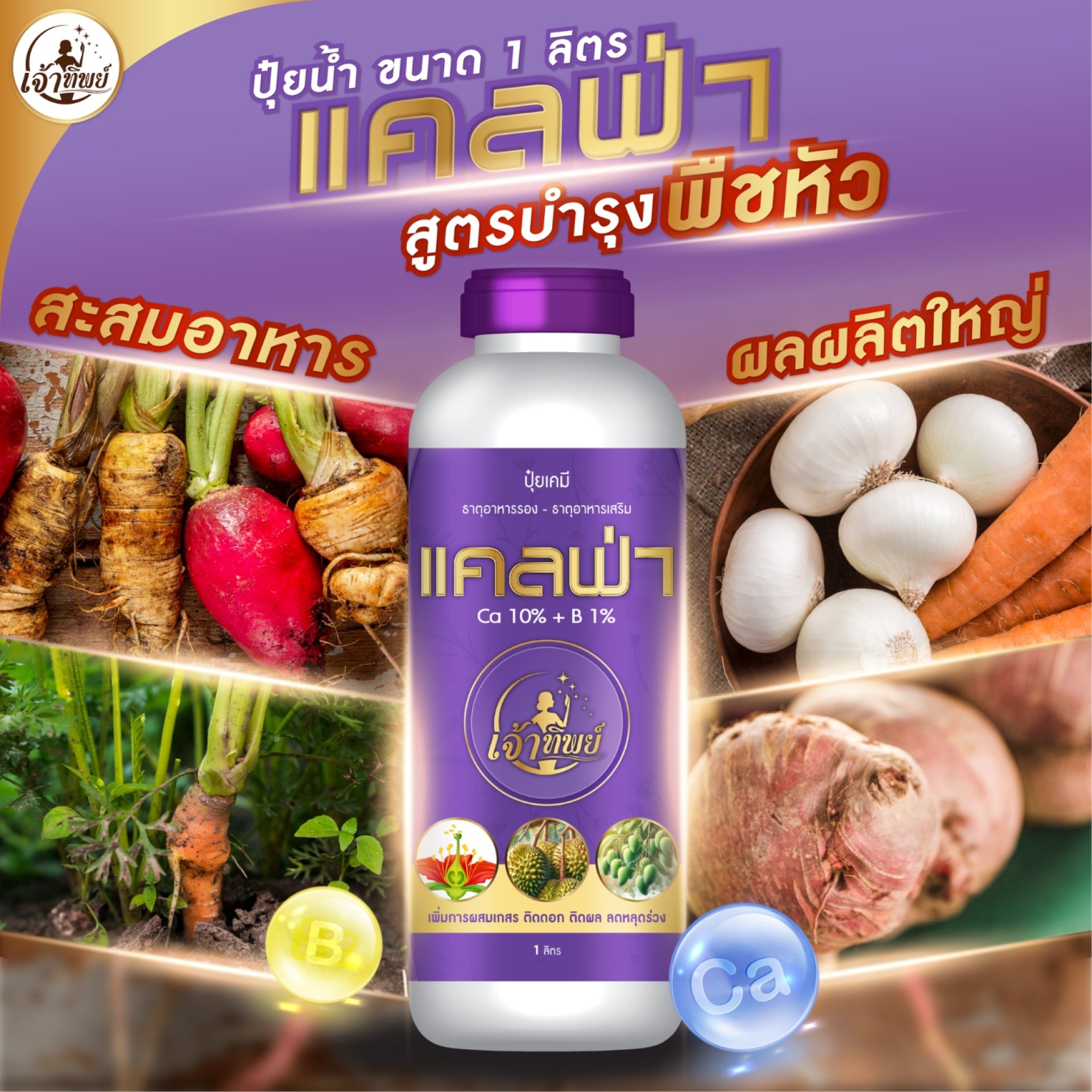[ป้องกันผลแตก] ปุ๋ยน้ำแคลฟ่า แคลเซียมโบรอน ขยายไซส์x3 ขั้วเหนียว เนื้อแน่นเต็มพิกัด! ตรา เจ้าทิพย์ ขนาด 1 ลิตร