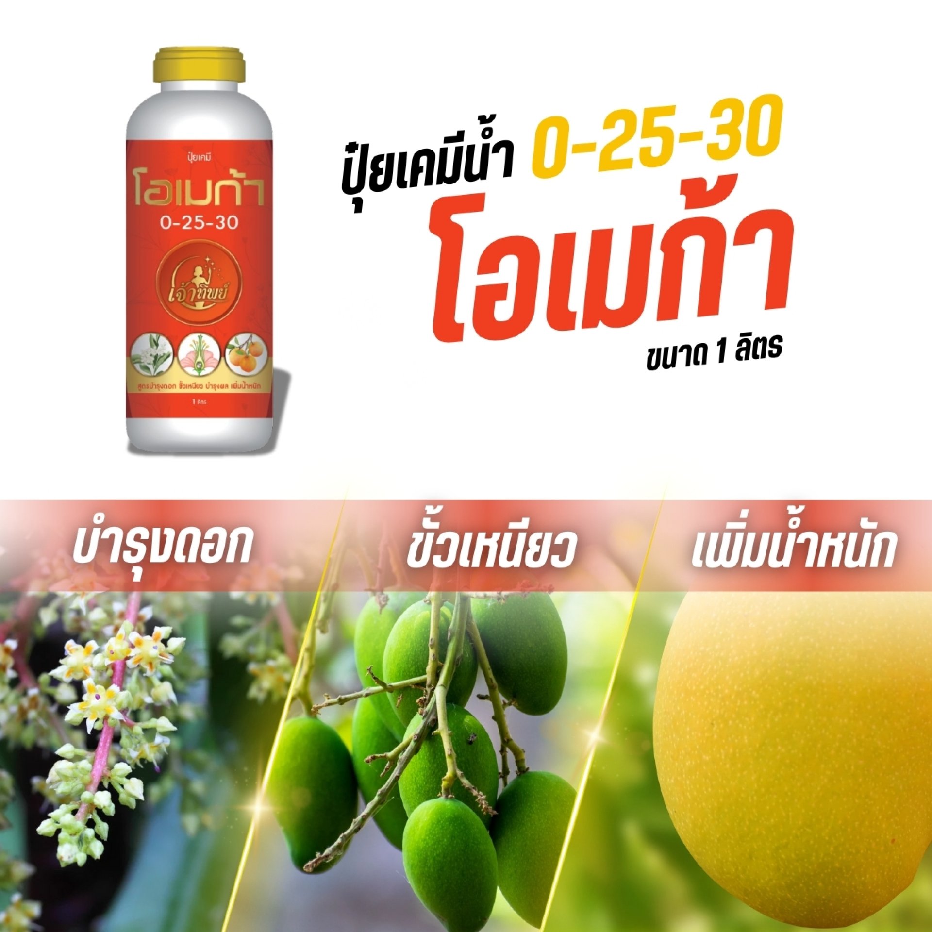 ดอกดก ติดดอกง่าย! ปุ๋ยน้ำโอเมก้า สูตร 0-25-30 ตราเจ้าทิพย์ ขนาด 1 ลิตร